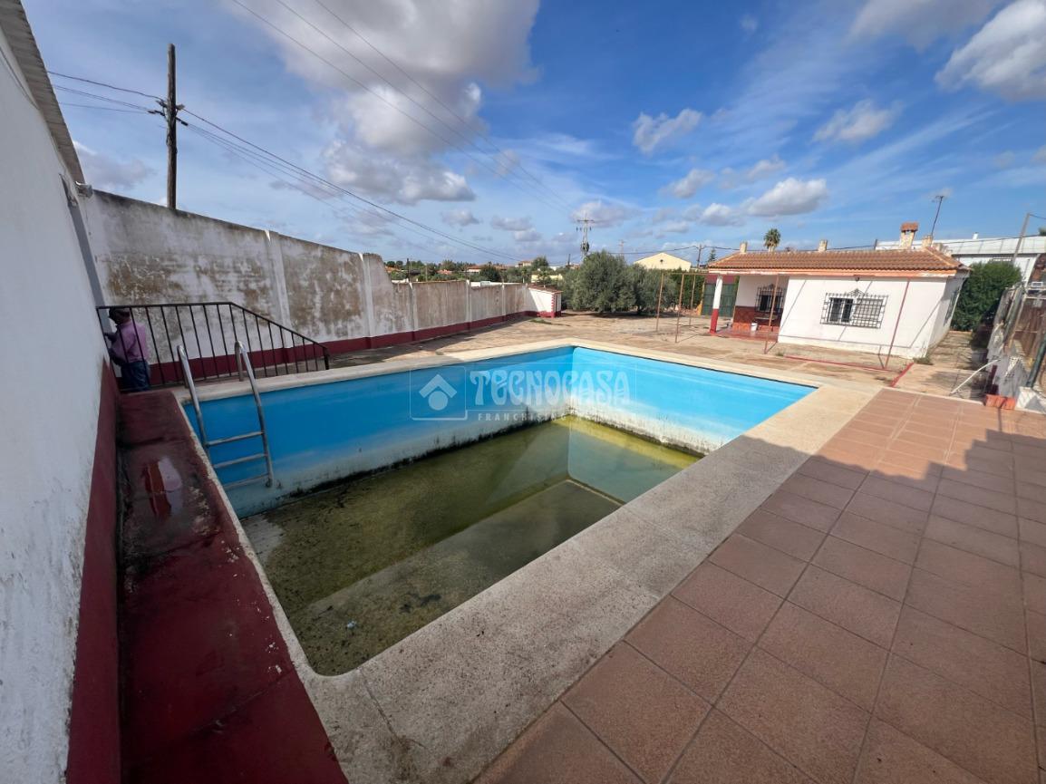 LAS PORTADAS: Parcela rústica de 999 m2 de terreno aproximadamente en Las Portadas en Urbanización San Miguel de Montelirio que consta de casa construida de unos 133 m2 con 3 dormitorios, salón, cocina y baño. Sobre la parcela también hay construida una nave de unos 80 m2. Cuenta con alberca. Porche de 18 m2 Agua de pozo.